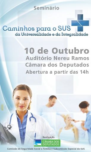 A Subcomissão Especial da Comissão de Seguridade Social e Família da Câmara dos Deputados destinada a tratar do Financiamento, Reestruturação da Organização e Funcionamento do SUS promove no próximo dia 10 de outubro, às 14 horas, o Seminário “Caminhos para o SUS da Universalidade e da Integralidade”. O evento será realizado no Auditório Nereu Ramos, na Câmara dos Deputados, e visa congregar as entidades envolvidas com o setor público da saúde, a comunidade acadêmica e a sociedade civil para discutir e avaliar os caminhos para o SUS avançar rumo a um acesso universal e da integralidade. A presidenta do Centro Brasileiro de Estudos de Saúde (Cebes), Ana Costa, estará presente ao evento.
