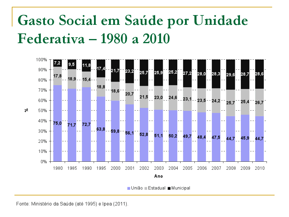A transferência de recursos, como mostrou Salvador Werneck, do Ipea, tem como uma de suas consequências a queda da participação do governo federal nos investimentos da saúde. Mesmo com a queda da participação dessas contribuiçõs em relação ao PIB, as transferências continuam.