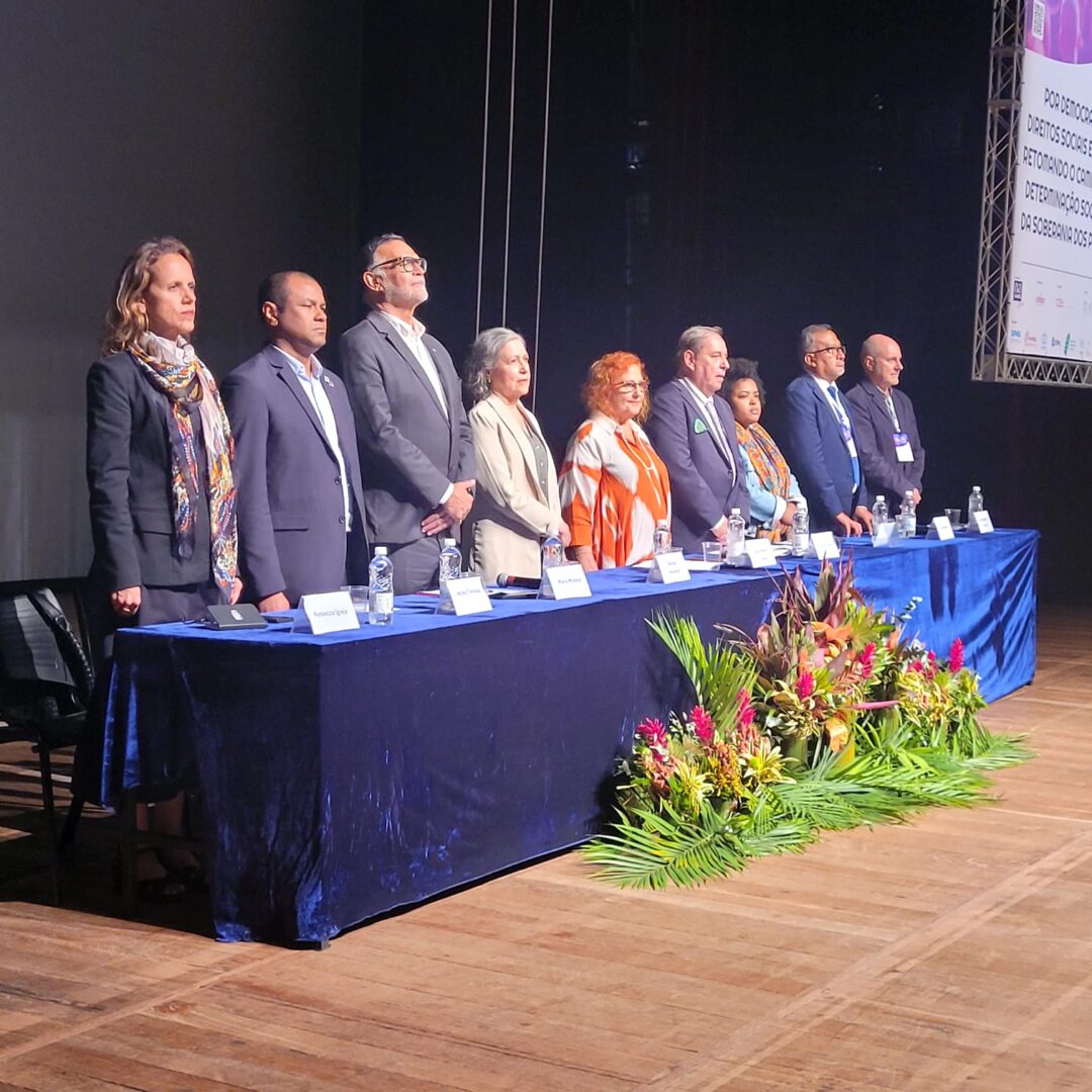 A mesa de abertura reuniu representantes de instituições nacionais e internacionais comprometidas com a defesa da saúde como direito e a construção de sociedades mais justas. Entre os presentes, lideranças da ALAMES, do Centro Brasileiro de Estudos de Saúde – Cebes, da OPAS/OMS, da UERJ, do Ministério da Saúde, da FIOCRUZ e do Conselho Nacional de Saúde.