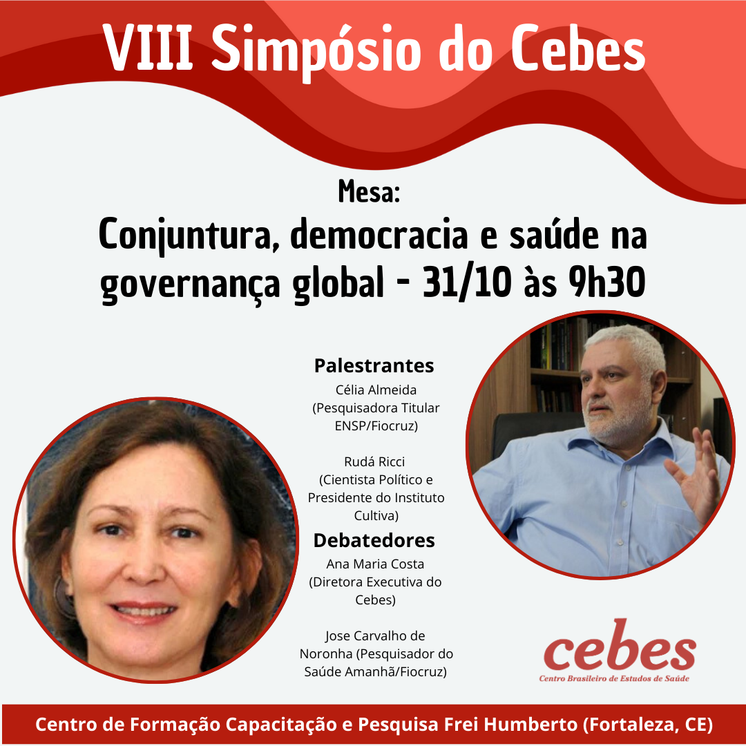 Mesa: Conjuntura, democracia e saúde na governança global (9h30 – 12h30)